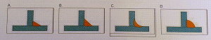 Welke afbeelding laat een uitgezakte hoeklas zien?
